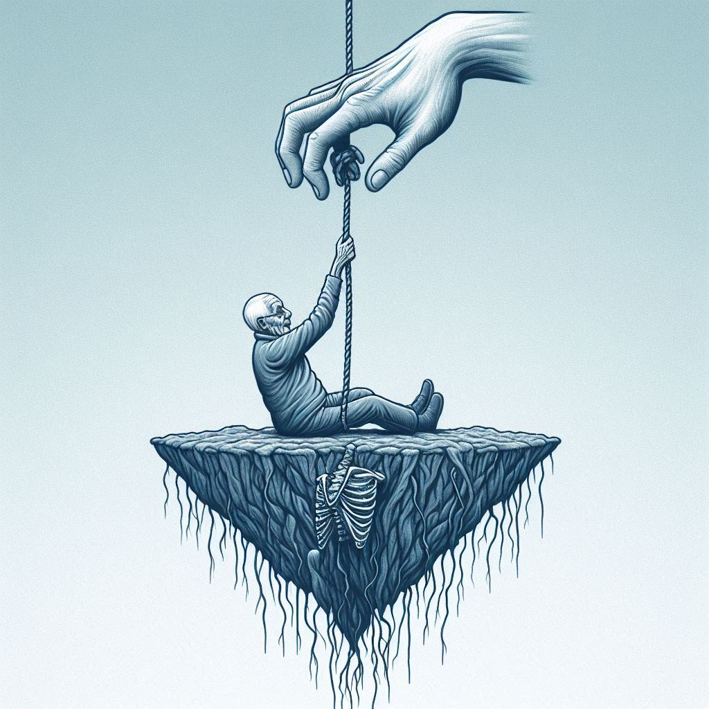 an adult hanging on a thread of life waiting to be saved